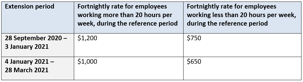 - The JobKeeper scheme, which was due to end on 27 September 2020, is being extended until 28 March 2020.
