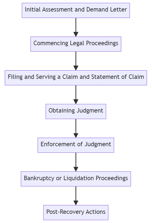 Initial Assessment and Demand Letter – The process begins with an initial assessment of the debt situation. This involves understanding the nature of the debt, the amount owed, and the debtor's details. Following this, a formal letter of demand is sent to the debtor, outlining the debt, and requesting payment. This letter often serves as a final warning before legal action is taken and may include a deadline for payment.
