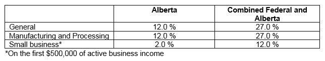 There were no changes announced to the corporate income tax rates. As of January 1, 2018 Alberta's corporate income tax rates remain as follows: