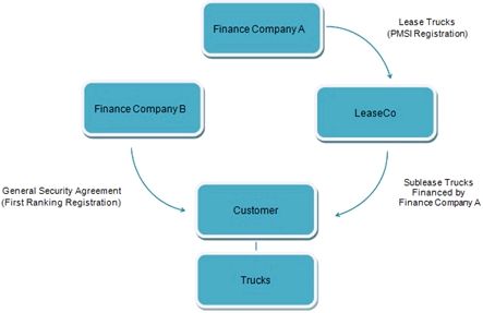 Often, LeaseCo or Finance Company A is of the understanding that they would have a prior claim to the trucks as Finance Company A registered under the PPSA against LeaseCo. That, however, would not be the result unless LeaseCo or Finance Company A undertook all proper registrations against the Customer and achieved priority over Finance Company B and any other prior secured creditors of the Customer. In Lesson Four of this series, we discussed that all leases of a term of more than one year should be registered under the PPSA. If Finance Company A only registered against LeaseCo and LeaseCo did not register the sub-lease against the Customer, then Finance Company B would have a better claim to the trucks under its general security agreement than either Finance Company A or LeaseCo.