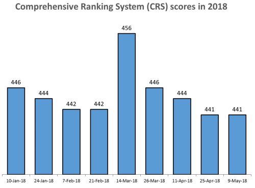 Today, the Department of Immigration, Refugees and Citizenship Canada (IRCC) invited applicants with a Comprehensive Ranking System (CRS) score of 441 to apply for Canadian permanent residence. The CRS cut-off threshold remained the same from the previous draw on April 25, 2018. A total of 3500 invitations were issued in today's draw. The number of invitations issued were exactly the same as the previous draw on April 25, 2018.