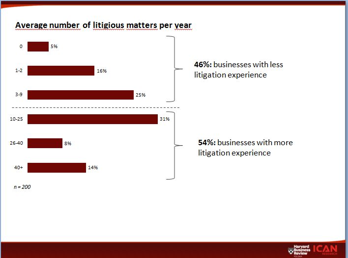 A quarter of the executives surveyed say disputes are on the rise in their sector, while a fifth also see a rise in their own companies. Overall, 25% of the businesses experienced between three and nine disputes, one third had between 10 and 25 disputes, and 20% had more than 26 disputes. Disputes are much more frequent in the services industry than in the manufacturing sector.