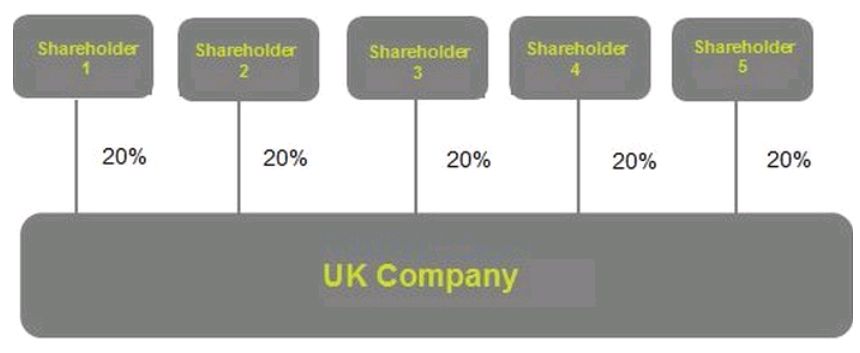 There will be instances where a company does not have a PSC or RLE. This may be the case, for example, where there are multiple shareholders each holding less than 25% of the shares, with each share holding one vote each (see diagram below). The company will still need to maintain a PSC register (i.e. to record that there are no registrable PSCs) and must file this information with Companies House. The register must not be left blank.
