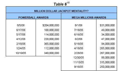The average American is assaulted everyday with how much money he or she can win in the lottery. The amount of money you can win is just a ticket away as seen by Table 6.
