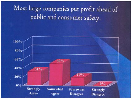 I have conducted numerous mock jury exercises to determine jurors' attitudes regarding corporations. These results are not surprising in today's culture. They clearly indicate the disadvantage any company has in trying a lawsuit against a person with a serious disease such as cancer.