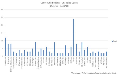 Where were cases filed? Although cases were unsealed in jurisdictions throughout the country, some interesting trends have emerged as to jurisdictions where the most cases have been unsealed: