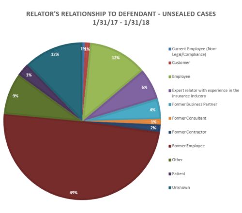 - As is typical, former employees were the most frequent relator type, accounting for 23 of the 56 unsealed cases. Current employees only brought four of the cases. Experts and consultants accounted for eight cases.