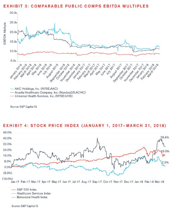 In 2017, according to S&P Capital IQ, 62 behavioral health transactions were announced, which shows a steady increase from the 55 transactions announced in 2016, continuing a robust trend of acquisition activity in the behavioral health sector. Behavioral health transaction multiples have remained strong, with a 2017 median EBITDA multiple of 10.1x, falling in line with recent multiples.