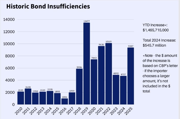 With rising tariffs, U.S. Customs and Border Protection (CBP) is busy sending importers bond insufficiency notices advising them that their existing customs bond no longer covers their obligations.